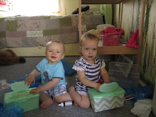 We were so lucky to find someone to watch William while Tyson and I are at work. I have known my friend Laura my whole life. Her parents are friends with my parents so we grew up thinking we were pretty much related. Laura has a baby girl, Eloise, who is just over a year old. William and Eloise get along so well! It makes me happy to know that my baby is safe and loved. Here are some pictures of Eloise and William from last week (Eloise is teaching William all the things she knows including "how to make a mess", which William CLEARLY loves):